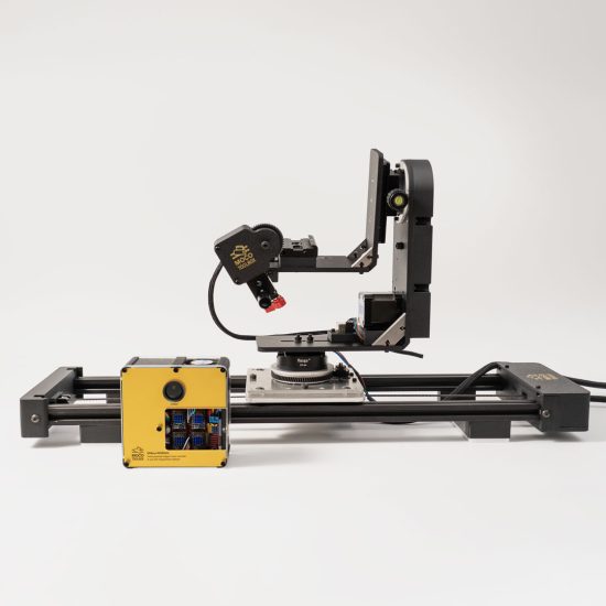 Combined with the Dragonframe controller, the rig moves smoothly. The long arms, paired with powerful load handling, provide a wide range of possibilities. The standard 2020 aluminum base makes it easy to attach various objects or expansions to the rig.