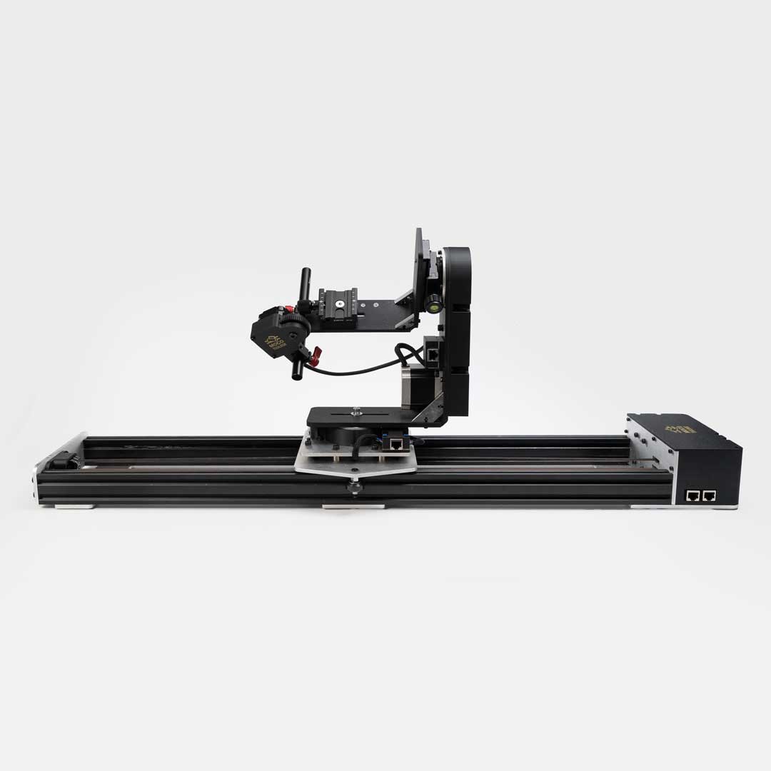 A high-precision, stepper motor–driven camera slider featuring an integrated pan and tilt head, engineered for smooth, repeatable 4-axis motion control. Built on a durable 2040 aluminum extrusion base, this system delivers exceptional stability and accuracy for professional tabletop production, stop motion, and VFX workflows.