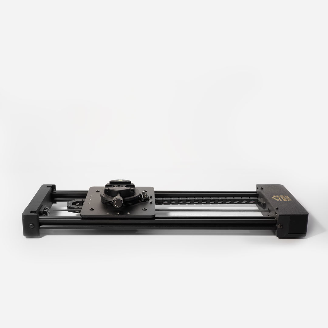 A compact, stepper motor–driven slider with an integrated pan head designed for precise camera and object moves. Built on a durable 2020 aluminum extrusion base, this system combines reliability with smooth motion for professional results.